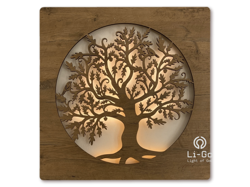 "Dub v kruhu" světelný obraz 230V 70x70cm